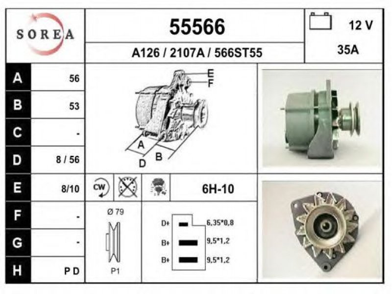įtampa [V]: 12 kintamosios srovės generatoriaus įkrovimo srovė [A]: 35 sukimo kryptis: rotacija pagal laikrodžio rodyklę papildomas gaminys / papildoma informacija: su integruotu reguliatoriumi techninės informacijos numeris: C01 terminalas / spaustukas: be apsūkų matuoklio jungties briaunų skaičius: 1 skriemuliai: su diržo skriemuliu skersmuo [mm]: 79 |