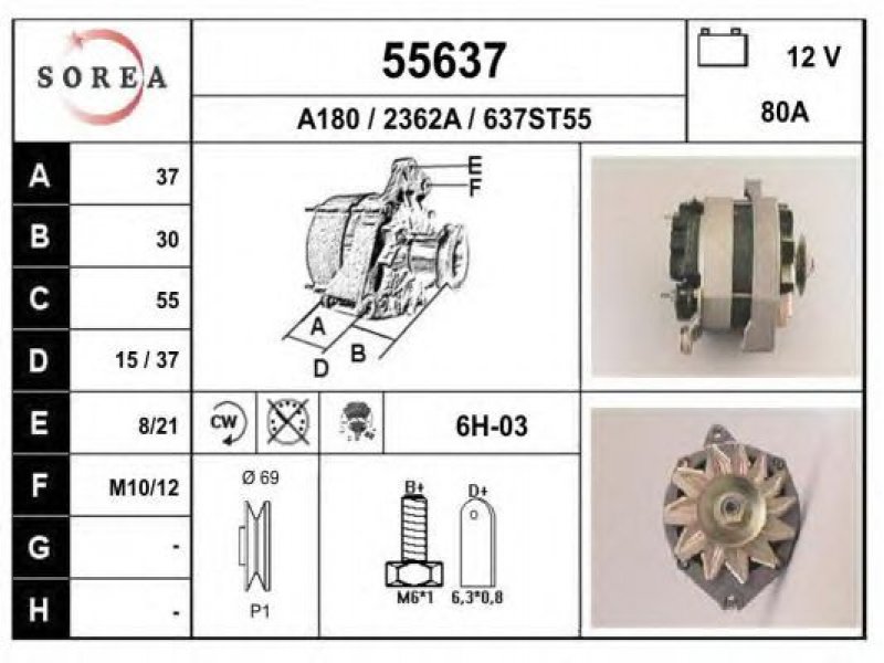 įtampa [V]: 12 kintamosios srovės generatoriaus įkrovimo srovė [A]: 80 sukimo kryptis: rotacija pagal laikrodžio rodyklę papildomas gaminys / papildoma informacija: su integruotu reguliatoriumi techninės informacijos numeris: C03 terminalas / spaustukas: be apsūkų matuoklio jungties briaunų skaičius: 1 skriemuliai: su diržo skriemuliu skersmuo [mm]: 69 |