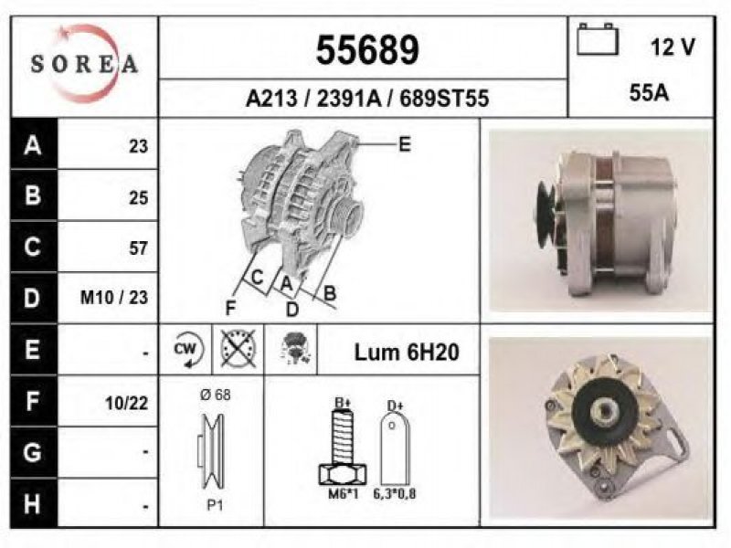 įtampa [V]: 12 kintamosios srovės generatoriaus įkrovimo srovė [A]: 55 sukimo kryptis: rotacija pagal laikrodžio rodyklę papildomas gaminys / papildoma informacija: su integruotu reguliatoriumi techninės informacijos numeris: C03 terminalas / spaustukas: be apsūkų matuoklio jungties briaunų skaičius: 1 skriemuliai: su diržo skriemuliu skersmuo [mm]: 68 |