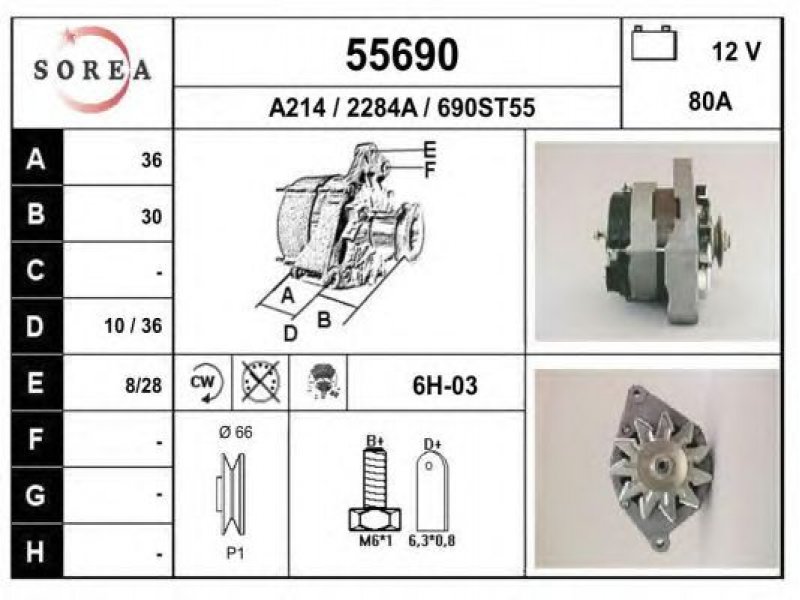 įtampa [V]: 12 kintamosios srovės generatoriaus įkrovimo srovė [A]: 80 sukimo kryptis: rotacija pagal laikrodžio rodyklę papildomas gaminys / papildoma informacija: su integruotu reguliatoriumi techninės informacijos numeris: C03 terminalas / spaustukas: be apsūkų matuoklio jungties briaunų skaičius: 1 skriemuliai: su diržo skriemuliu skersmuo [mm]: 66 |