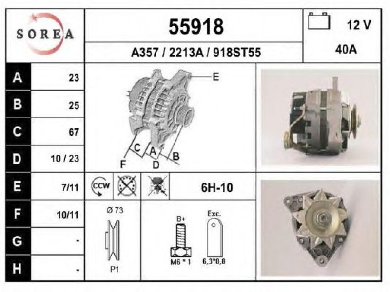 įtampa [V]: 12 kintamosios srovės generatoriaus įkrovimo srovė [A]: 40 sukimo kryptis: Rotacija prieš laikrodžio rodyklę techninės informacijos numeris: C08 terminalas / spaustukas: be apsūkų matuoklio jungties briaunų skaičius: 1 skriemuliai: su diržo skriemuliu skersmuo [mm]: 73 |