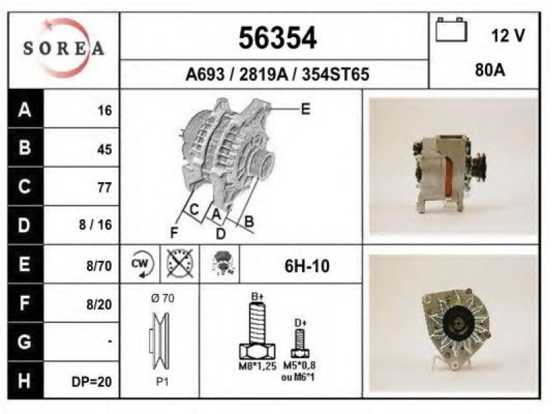 įtampa [V]: 12 kintamosios srovės generatoriaus įkrovimo srovė [A]: 80 sukimo kryptis: rotacija pagal laikrodžio rodyklę papildomas gaminys / papildoma informacija: su integruotu reguliatoriumi techninės informacijos numeris: C04 terminalas / spaustukas: be apsūkų matuoklio jungties briaunų skaičius: 1 skriemuliai: su diržo skriemuliu skersmuo [mm]: 70 |