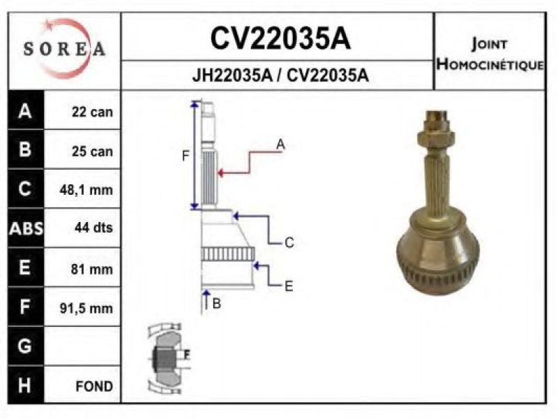 išorinis krumplys, rato pusė: 22 vidinis krumplys, rato pusė: 25 krumplių skaičius, ABS žiedas: 44 išorinis skersmuo [mm]: 81 stabdymas / važiavimo dinamika: transporto priemonėms su ABS kardaninis velenas: su ABS žiedu |