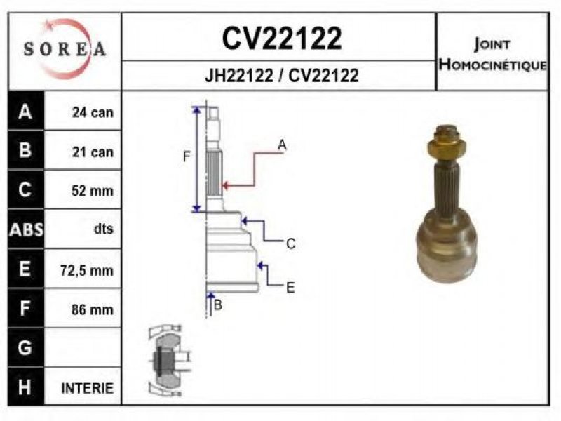 išorinis krumplys, rato pusė: 24 vidinis krumplys, rato pusė: 21 išorinis skersmuo [mm]: 72,5