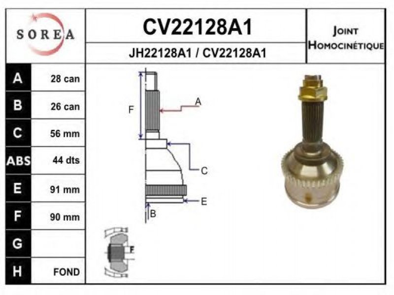 išorinis krumplys, rato pusė: 28 vidinis krumplys, rato pusė: 26 krumplių skaičius, ABS žiedas: 44 išorinis skersmuo [mm]: 91 stabdymas / važiavimo dinamika: transporto priemonėms su ABS kardaninis velenas: su ABS žiedu |