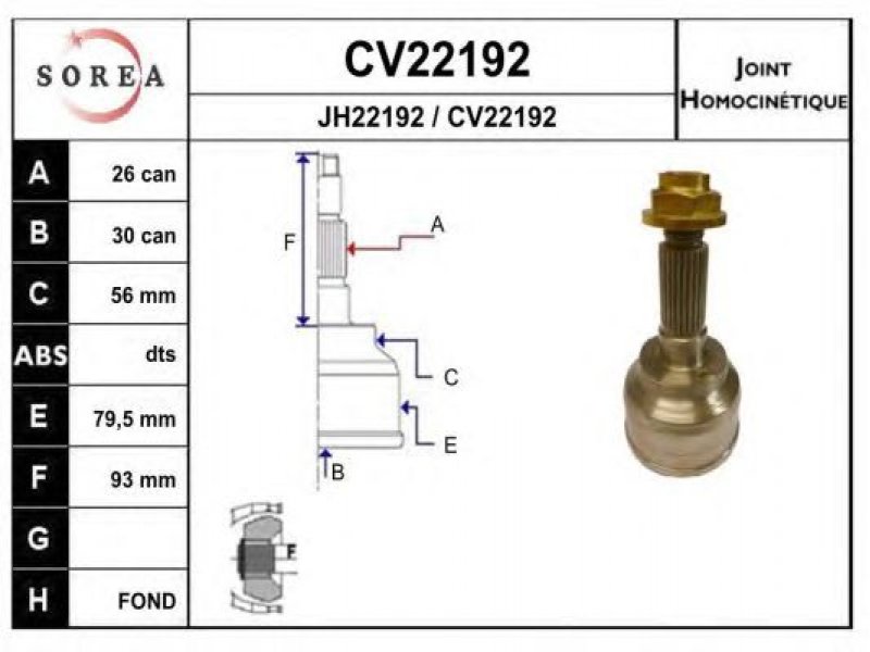 išorinis krumplys, rato pusė: 26 vidinis krumplys, rato pusė: 30 išorinis skersmuo [mm]: 79,5