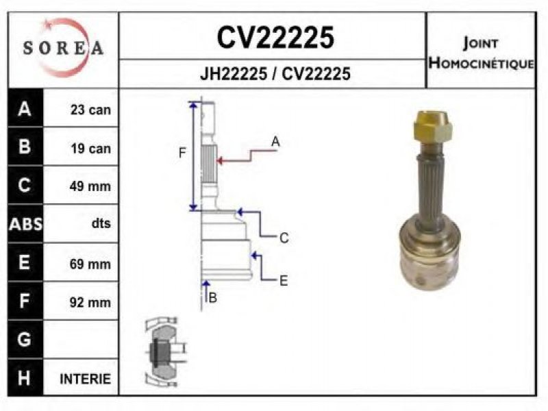išorinis krumplys, rato pusė: 23 vidinis krumplys, rato pusė: 19 išorinis skersmuo [mm]: 69