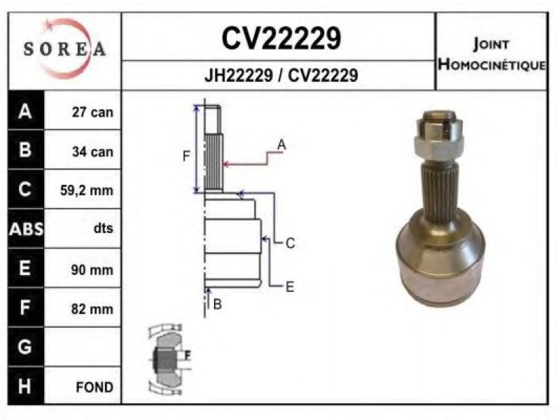 Jungčių komplektas, kardaninis velenas CV22229K EAI