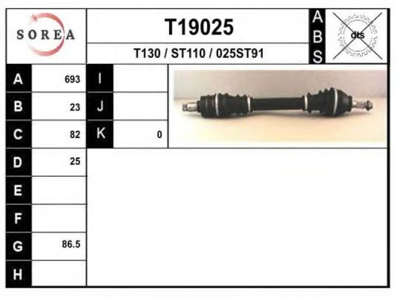 ilgis [mm]: 693 išorinis krumplys, rato pusė: 23 skersmuo 1 [mm]: 86,5 išorinis krumplys. kt. pusė: 25 stabdymas / važiavimo dinamika: transporto priemonėms be ABS |