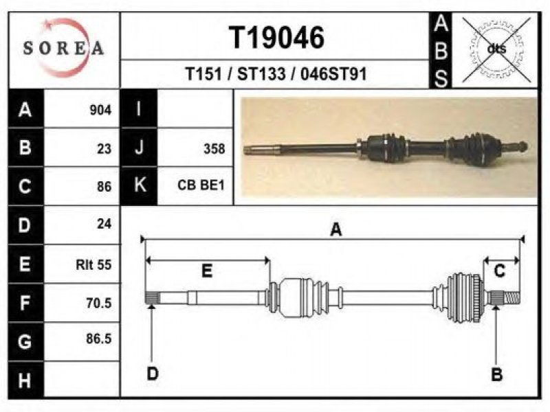 ilgis [mm]: 904 išorinis krumplys, rato pusė: 23 skersmuo 1 [mm]: 86,5 išorinis krumplys. kt. pusė: 24 skersmuo 2 [mm]: 70,5 stabdymas / važiavimo dinamika: transporto priemonėms be ABS |