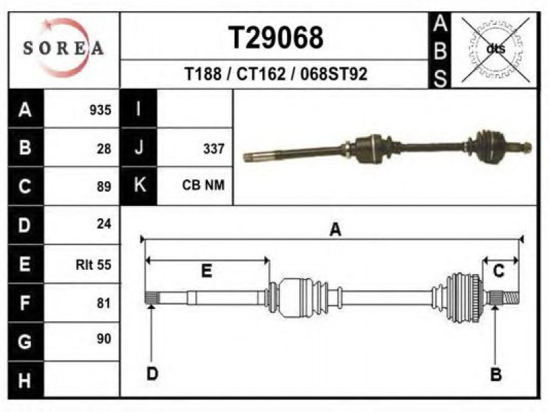 ilgis [mm]: 939 išorinis krumplys, rato pusė: 28 skersmuo 1 [mm]: 90 išorinis krumplys. kt. pusė: 24 skersmuo 2 [mm]: 76,5 stabdymas / važiavimo dinamika: transporto priemonėms be ABS |
