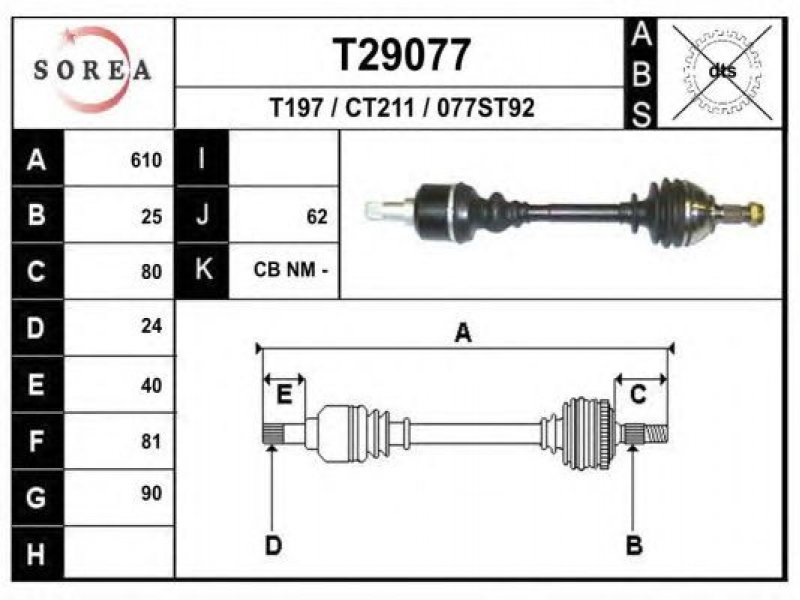 ilgis [mm]: 612 išorinis krumplys, rato pusė: 25 skersmuo 1 [mm]: 90 išorinis krumplys. kt. pusė: 24 skersmuo 2 [mm]: 81 stabdymas / važiavimo dinamika: transporto priemonėms be ABS |