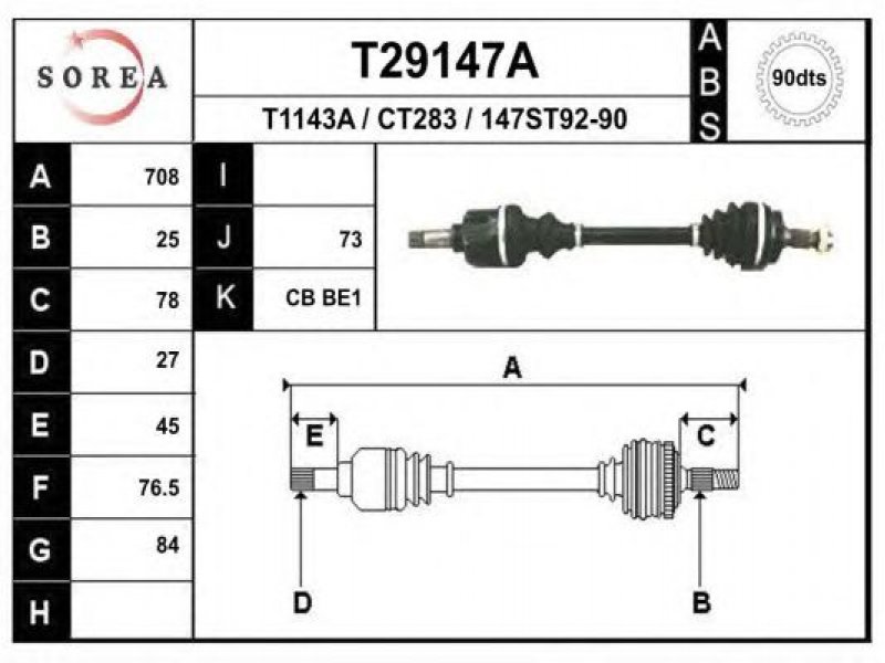 ilgis [mm]: 708 išorinis krumplys, rato pusė: 25 skersmuo 1 [mm]: 84 išorinis krumplys. kt. pusė: 27 skersmuo 2 [mm]: 76,5 krumplių skaičius, ABS žiedas: 90 stabdymas / važiavimo dinamika: transporto priemonėms su ABS kardaninis velenas: su ABS žiedu |