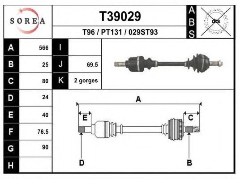 ilgis [mm]: 566 išorinis krumplys, rato pusė: 25 skersmuo 1 [mm]: 90 išorinis krumplys. kt. pusė: 24 skersmuo 2 [mm]: 76,5 stabdymas / važiavimo dinamika: transporto priemonėms be ABS |