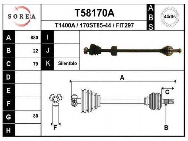 ilgis [mm]: 880 išorinis krumplys, rato pusė: 22 skersmuo 1 [mm]: 80 skersmuo 3 [mm]: 32 krumplių skaičius, ABS žiedas: 44 stabdymas / važiavimo dinamika: transporto priemonėms su ABS kardaninis velenas: su ABS žiedu |