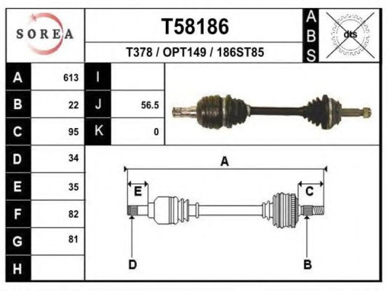 ilgis [mm]: 613 išorinis krumplys, rato pusė: 22 skersmuo 1 [mm]: 81 išorinis krumplys. kt. pusė: 34 skersmuo 2 [mm]: 91,5