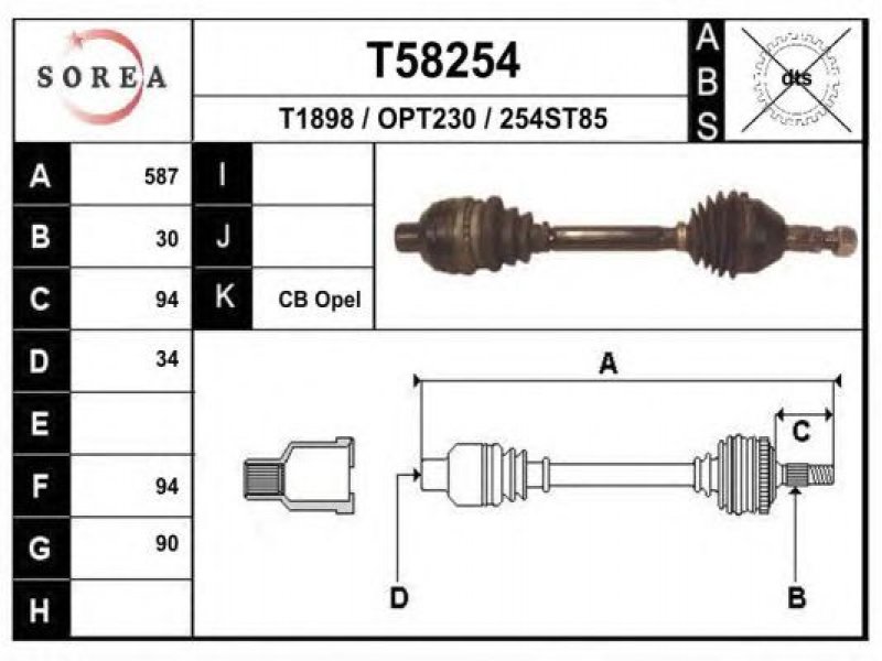 ilgis [mm]: 587 išorinis krumplys, rato pusė: 30 skersmuo 1 [mm]: 90 išorinis krumplys. kt. pusė: 34 skersmuo 2 [mm]: 94