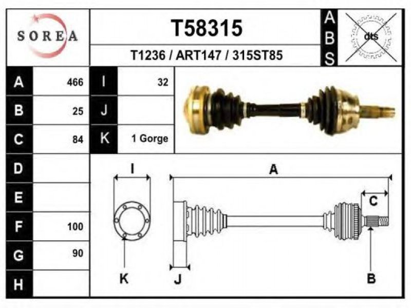 ilgis [mm]: 466 išorinis krumplys, rato pusė: 25 skersmuo 1 [mm]: 90 skersmuo 2 [mm]: 100 stabdymas / važiavimo dinamika: transporto priemonėms be ABS |