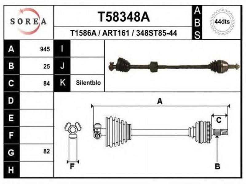 ilgis [mm]: 945 išorinis krumplys, rato pusė: 25 skersmuo 1 [mm]: 82 skersmuo 3 [mm]: 32 krumplių skaičius, ABS žiedas: 44 stabdymas / važiavimo dinamika: transporto priemonėms su ABS kardaninis velenas: su ABS žiedu |