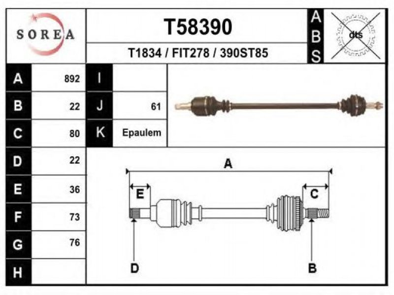 Kardaninis velenas T58390 EAI |