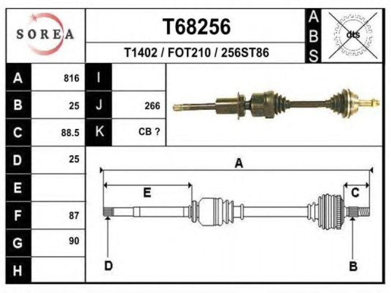 ilgis [mm]: 816 išorinis krumplys, rato pusė: 25 skersmuo 1 [mm]: 90 išorinis krumplys. kt. pusė: 25 skersmuo 2 [mm]: 87