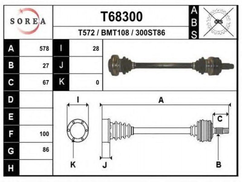 ilgis [mm]: 578 išorinis krumplys, rato pusė: 27 skersmuo 1 [mm]: 86 skersmuo 2 [mm]: 100 stabdymas / važiavimo dinamika: transporto priemonėms be ABS |
