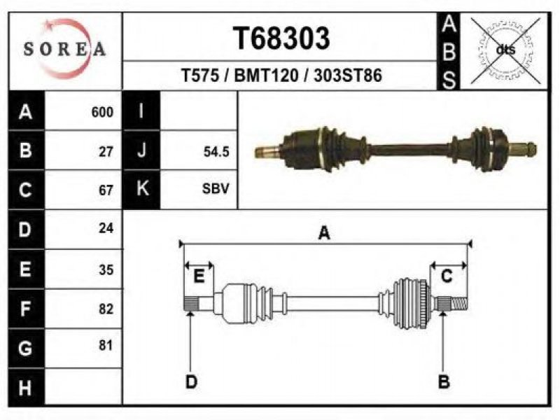 ilgis [mm]: 600 išorinis krumplys, rato pusė: 27 skersmuo 1 [mm]: 81 išorinis krumplys. kt. pusė: 24 skersmuo 2 [mm]: 82 stabdymas / važiavimo dinamika: transporto priemonėms be ABS |