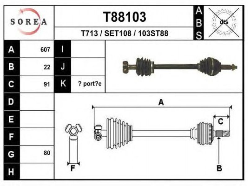 ilgis [mm]: 607 išorinis krumplys, rato pusė: 22 skersmuo 1 [mm]: 80 skersmuo 3 [mm]: 32 stabdymas / važiavimo dinamika: transporto priemonėms be ABS |