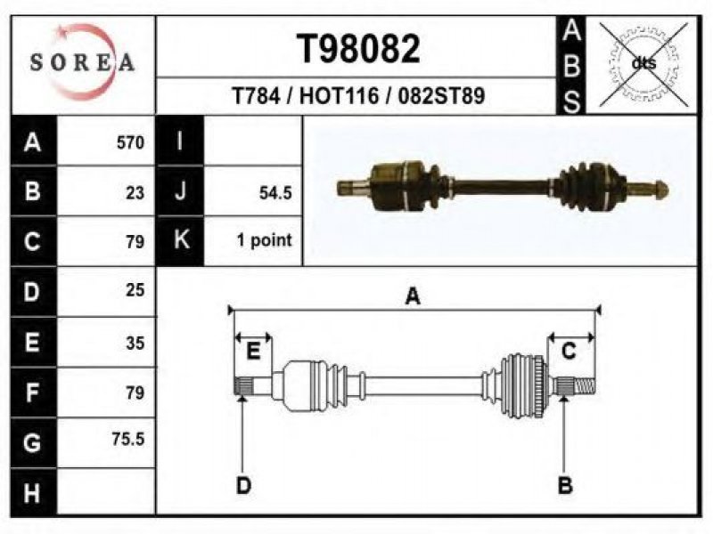 ilgis [mm]: 570 išorinis krumplys, rato pusė: 23 skersmuo 1 [mm]: 75,5 išorinis krumplys. kt. pusė: 25 skersmuo 2 [mm]: 79