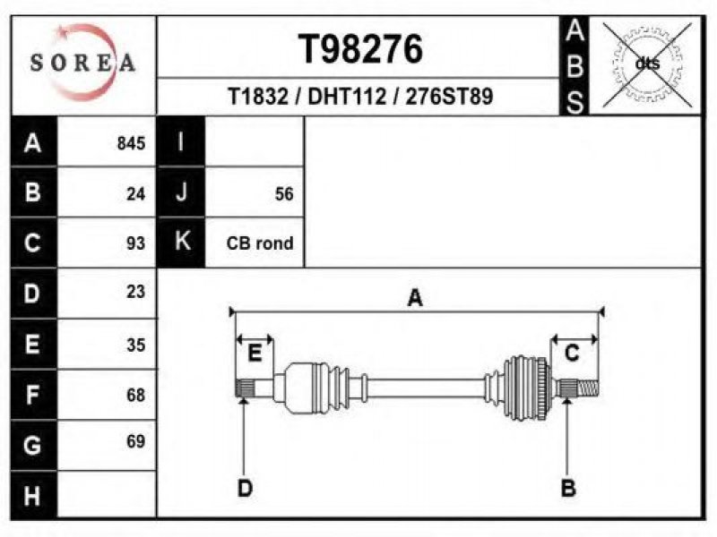 ilgis [mm]: 845 išorinis krumplys, rato pusė: 24 skersmuo 1 [mm]: 69 išorinis krumplys. kt. pusė: 23 skersmuo 2 [mm]: 68 stabdymas / važiavimo dinamika: transporto priemonėms be ABS |