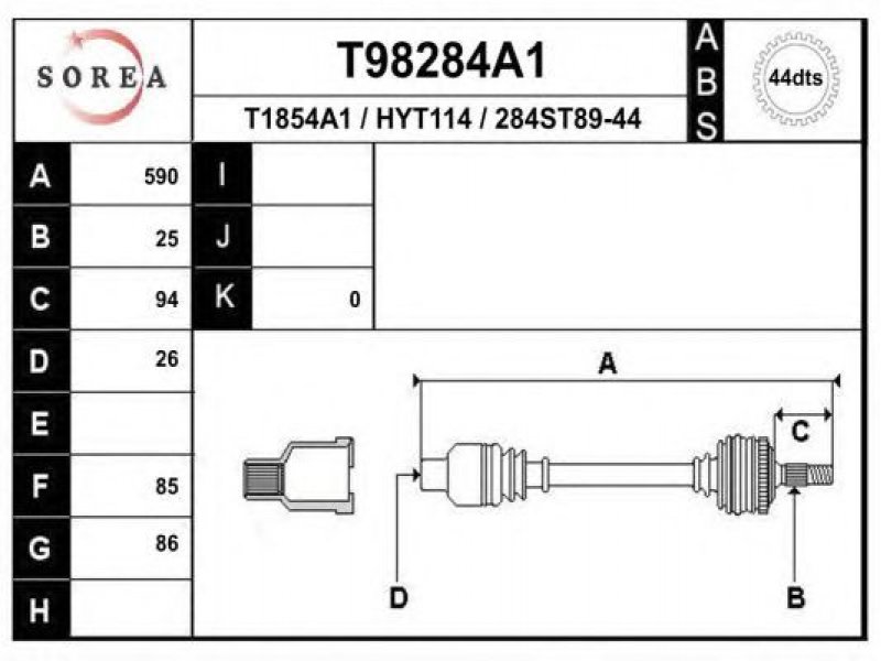 ilgis [mm]: 585 išorinis krumplys, rato pusė: 25 skersmuo 1 [mm]: 83 išorinis krumplys. kt. pusė: 26 skersmuo 2 [mm]: 82 krumplių skaičius, ABS žiedas: 44 stabdymas / važiavimo dinamika: transporto priemonėms su ABS kardaninis velenas: su ABS žiedu |