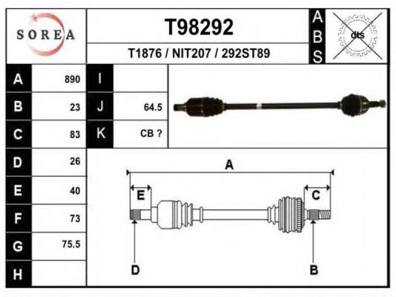Kardaninis velenas T98292 EAI |