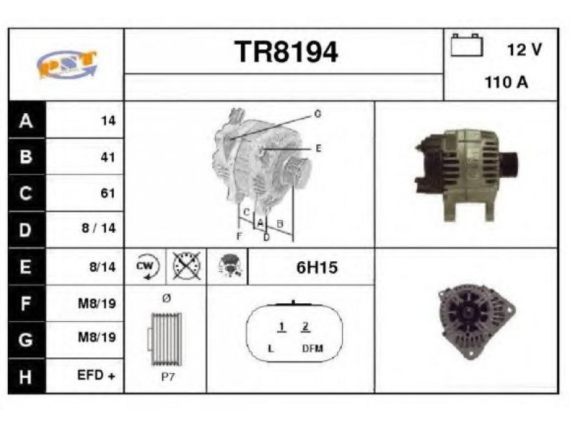 įtampa [V]: 12 nustatyta srovė [A]: 110 sukimo kryptis: rotacija pagal laikrodžio rodyklę papildomas gaminys / papildoma informacija: su integruotu reguliatoriumi techninės informacijos numeris: C122 terminalas / spaustukas: be apsūkų matuoklio jungties briaunų skaičius: 7 skriemuliai: su diržo skriemuliu