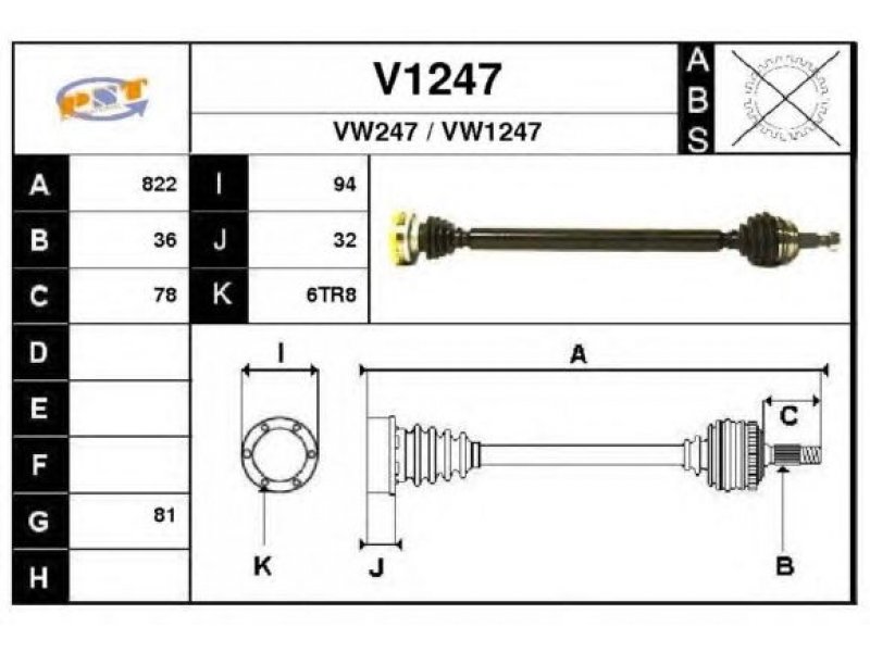 ilgis [mm]: 822 išorinis krumplys, rato pusė: 36 skersmuo 1 [mm]: 81 skersmuo 2 [mm]: 94 stabdymas / važiavimo dinamika: transporto priemonėms be ABS |
