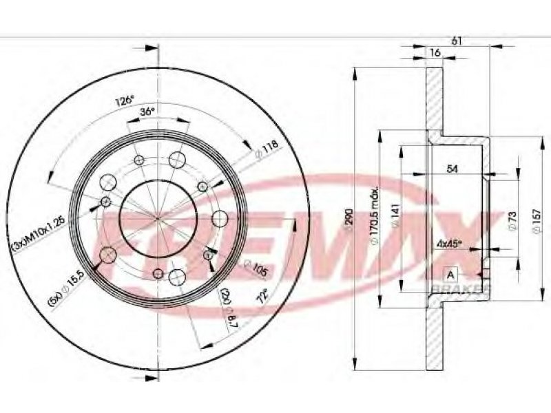 skersmuo [mm]: 290 stabdžių disko tipas: visiškai stabdžių disko storis [mm]: 16 minimalus storis [mm]: 14,8 aukštis [mm]: 61 žiedų angų skaičius: 5 rato stebulės skersmuo [mm]: 73 užbaigimas: pastiprinta anglis montavimo vieta: priekinė ašis |