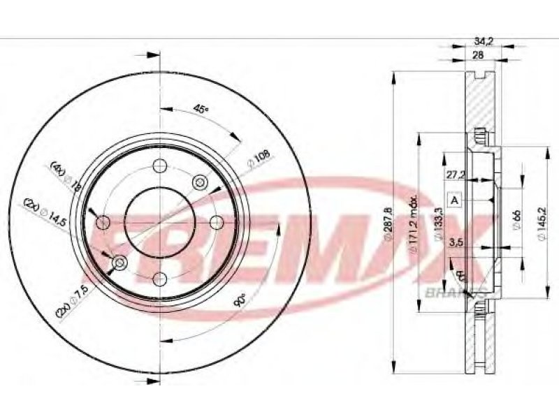 skersmuo [mm]: 288 stabdžių disko tipas: vidinis ventiliavimas stabdžių disko storis [mm]: 28 minimalus storis [mm]: 26 aukštis [mm]: 34,4 žiedų angų skaičius: 4 rato stebulės skersmuo [mm]: 66 užbaigimas: pastiprinta anglis montavimo vieta: priekinė ašis