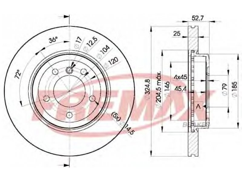 skersmuo [mm]: 325,5 stabdžių disko tipas: vidinis ventiliavimas stabdžių disko storis [mm]: 25 minimalus storis [mm]: 23,4 aukštis [mm]: 52,7 žiedų angų skaičius: 5 rato stebulės skersmuo [mm]: 79 spalva: juoda paviršius: padengta užbaigimas: pastiprinta anglis |