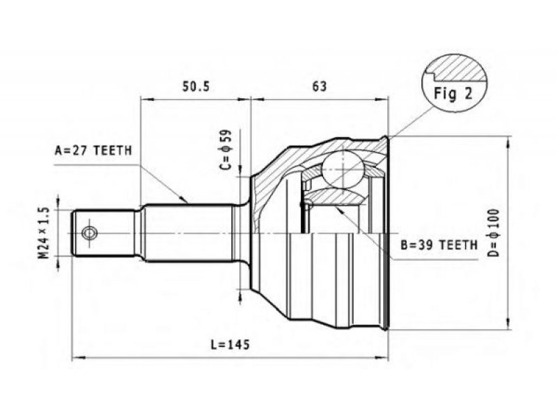 montavimo vieta: rato pusė jungties tipas: CV sujungimas išorinis krumplys, rato pusė: 27 vidinis krumplys, rato pusė: 39 sandariklio skersmuo [mm]: 60 išorinis skersmuo [mm]: 100 |