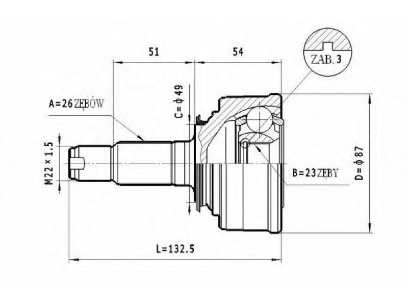 montavimo vieta: rato pusė jungties tipas: CV sujungimas išorinis krumplys, rato pusė: 26 vidinis krumplys, rato pusė: 23 sandariklio skersmuo [mm]: 49 išorinis skersmuo [mm]: 87 |
