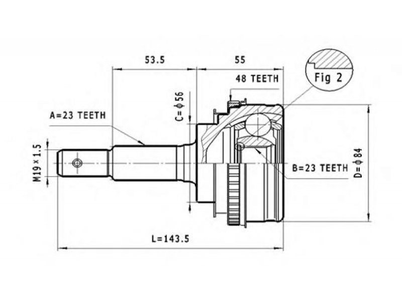 montavimo vieta: rato pusė jungties tipas: CV sujungimas išorinis krumplys, rato pusė: 23 vidinis krumplys, rato pusė: 23 sandariklio skersmuo [mm]: 56 išorinis skersmuo [mm]: 84 krumplių skaičius, ABS žiedas: 48 |