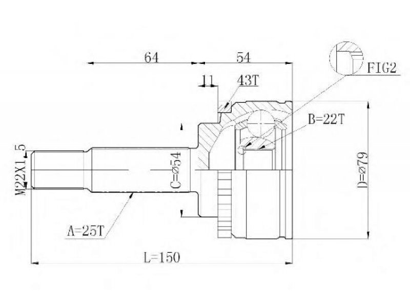 montavimo vieta: rato pusė jungties tipas: CV sujungimas išorinis krumplys, rato pusė: 25 vidinis krumplys, rato pusė: 22 sandariklio skersmuo [mm]: 54 išorinis skersmuo [mm]: 79 krumplių skaičius, ABS žiedas: 43 |