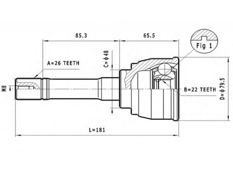 montavimo vieta: rato pusė jungties tipas: CV sujungimas išorinis krumplys, rato pusė: 26 vidinis krumplys, rato pusė: 22 sandariklio skersmuo [mm]: 48 išorinis skersmuo [mm]: 79,5 |