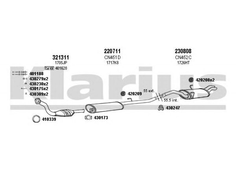 montavimo komplektas, katalizatoriaus keitiklis