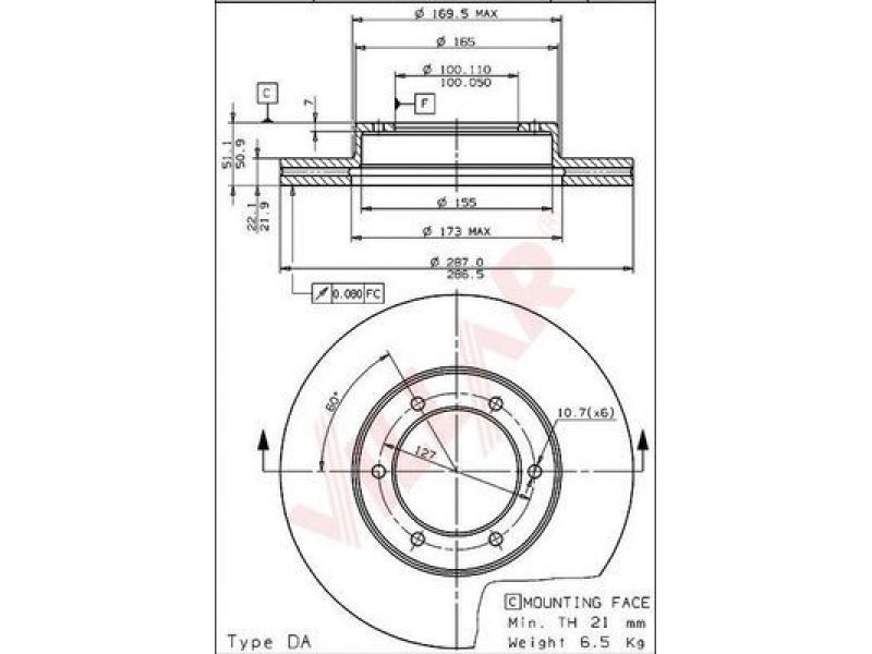 prekės numeriui: 628.1599 skersmuo [mm]: 287 aukštis [mm]: 51 stabdžių disko tipas: vidinis ventiliavimas stabdžių disko storis [mm]: 22 minimalus storis [mm]: 21 angų skaičius: 6 centravimo skersmuo [mm]: 100 |