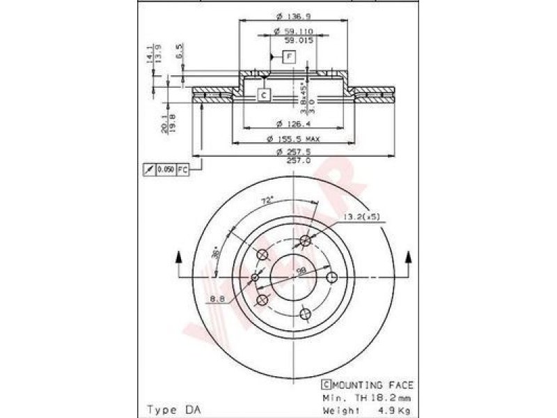 prekės numeriui: 628.1685 skersmuo [mm]: 257 aukštis [mm]: 40,5 stabdžių disko tipas: vidinis ventiliavimas stabdžių disko storis [mm]: 20 minimalus storis [mm]: 18,2 angų skaičius: 5 centravimo skersmuo [mm]: 59 papildomas gaminys / papildoma informacija 2: su varžtais |