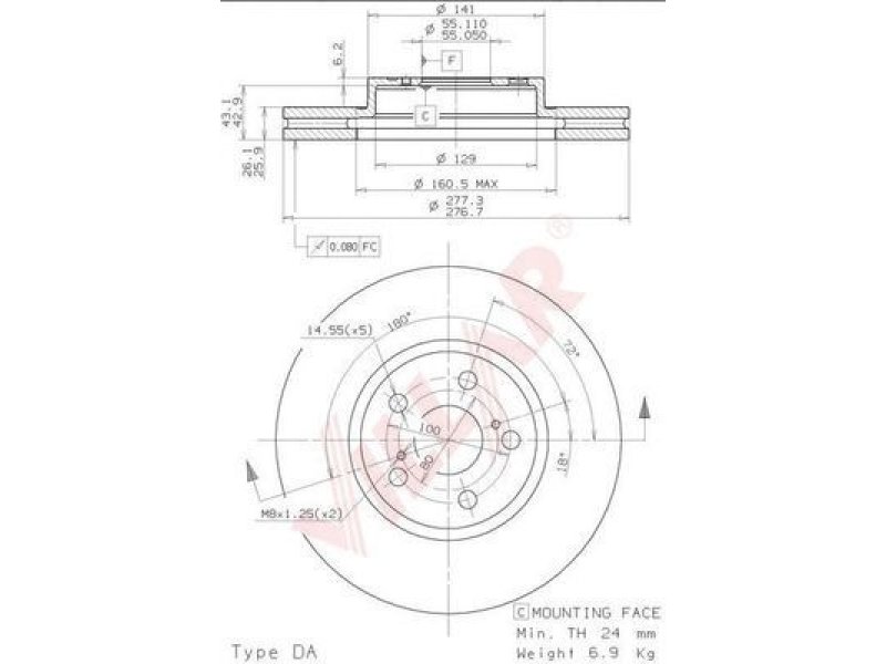 prekės numeriui: 628.2017 skersmuo [mm]: 277 aukštis [mm]: 49,2 stabdžių disko tipas: vidinis ventiliavimas stabdžių disko storis [mm]: 26 minimalus storis [mm]: 24 užbaigimas: pastiprinta anglis angų skaičius: 5 centravimo skersmuo [mm]: 55 montavimo vieta: priekinė ašis