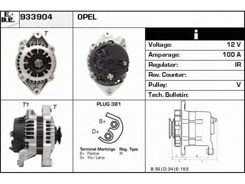 Kintamosios srovės generatorius 933904 EDR |