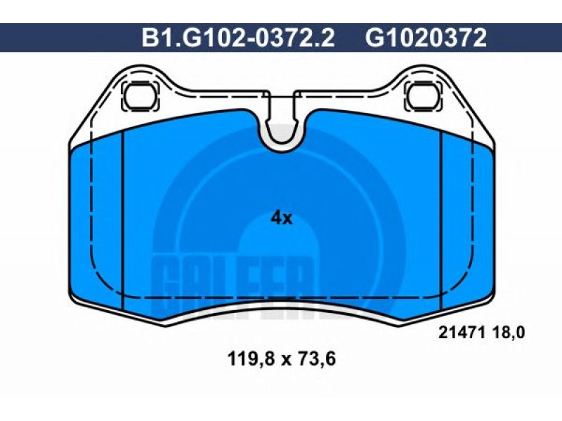 plotis [mm]: 119,8 aukštis [mm]: 73,6 storis [mm]: 18 susidėvėjimo įspėjimo kontaktas: neįsk. įspėjimo apie nusidėvėjimą kontakto stabdžių sistema: Brembo patikros žymė: E9 90R-02A1122/1490 |