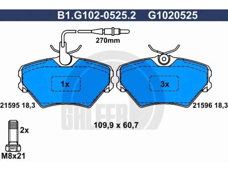 Stabdžių trinkelių rinkinys, diskinis stabdys B1.G102-0525.2 GALFER |