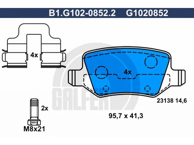 Stabdžių trinkelių rinkinys, diskinis stabdys B1.G102-0852.2 GALFER |